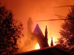 This the fire that destroyed our church, it was a dramatic event that has had a huge impact on my church family. We are in the process of rebuilding and hope to move home early next year.