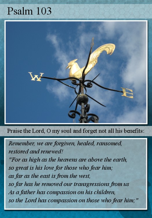 I have made a postcard based on Psalm 103 – a good place to start might be to reflect on God’s deep love for you and remember all the times he does overlook our flaws and disappointments and failures.