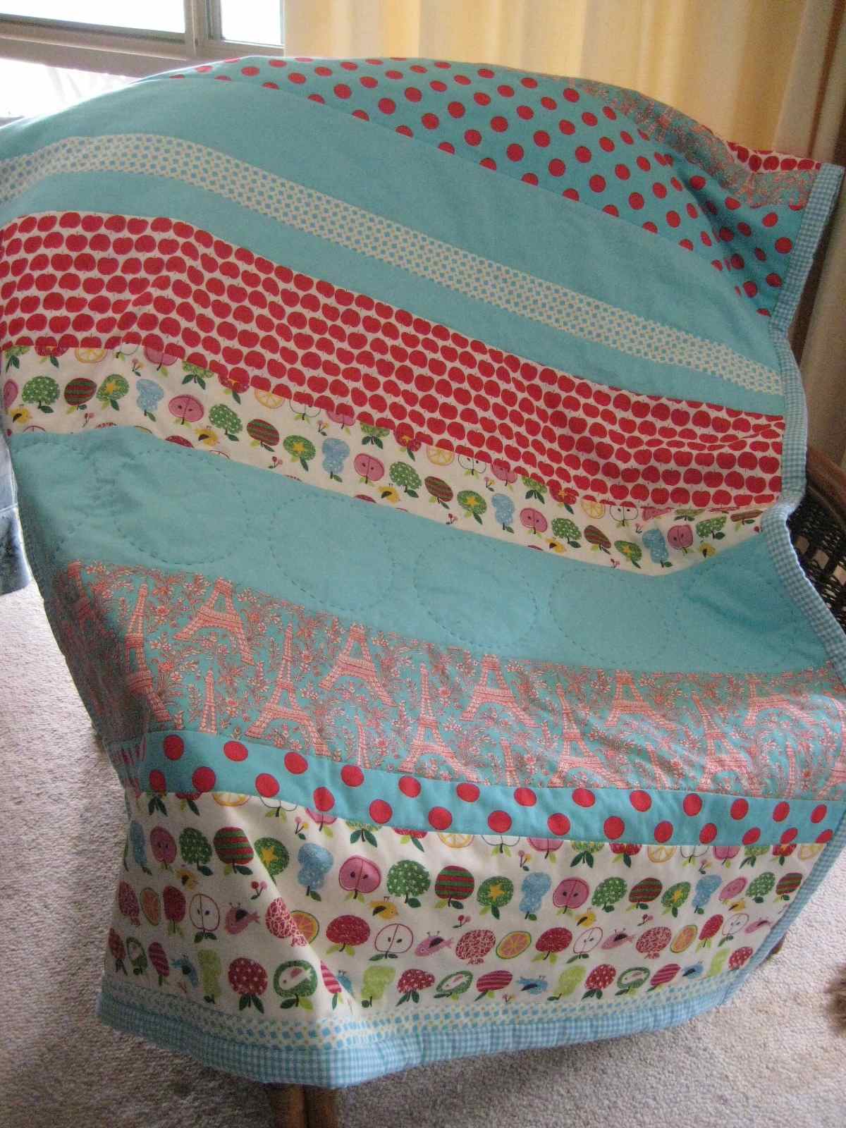 I am blessed with a number of nieces who I love and adore their company. One has recently turned 21. Her favourite colour is turquoise, so the quilt had to include this colour. I also had limited time – so I decided to join random pieces of fabric together in the colours I had chosen. It is simple and effective. I used a bamboo wadding – much to my surprise it is beautifully soft and easy to machine and hand quilt. It is not huge, but hopefully she can snuggle under it watching TV or when reading a book.