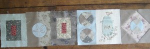 This means that I am getting some sewing done. I bought a kit at the Craft Fair in Sydney last year and for six months I received a package in the mail each month containing the instructions and bits I needed to make each panel. I have been saving them to do on this trip. This week I finished the first panel. I am not good at embroidery, and have had to draw the designs onto the fabric myself as I don’t have a lightbox to help with tracing. I have almost finished the second panel. I chose this design as I loved the soft muted colours and I thought I would learn different techniques constructing the different squares.