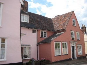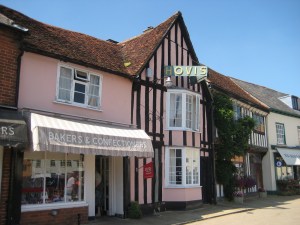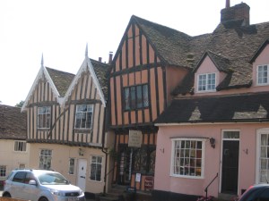 Bury St Edmunds is in Suffolk. It is characterised by tiny villages filled with little pink houses with gardens filled with hollyhocks. We recently visited two such villages – Lavenham and Long Melford.